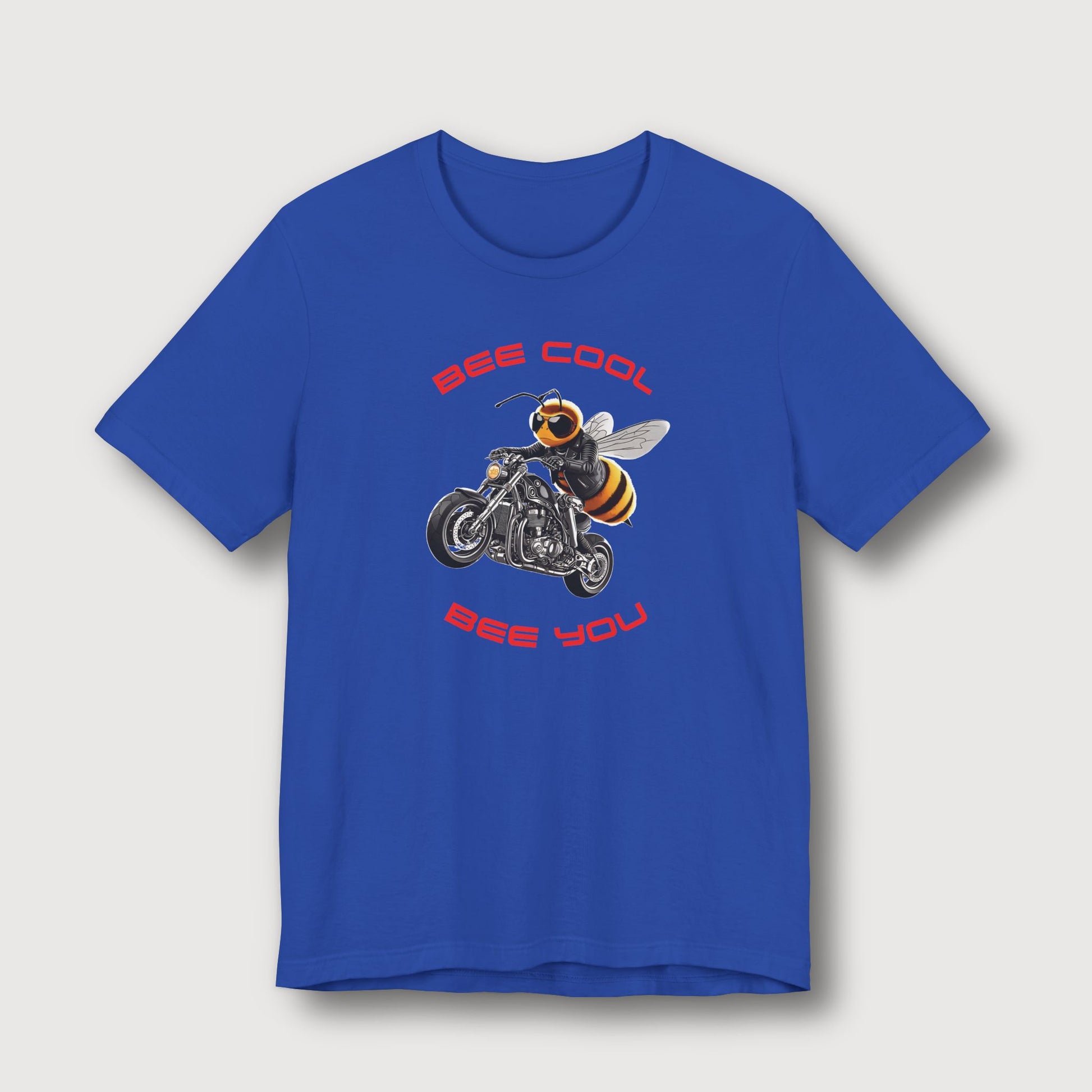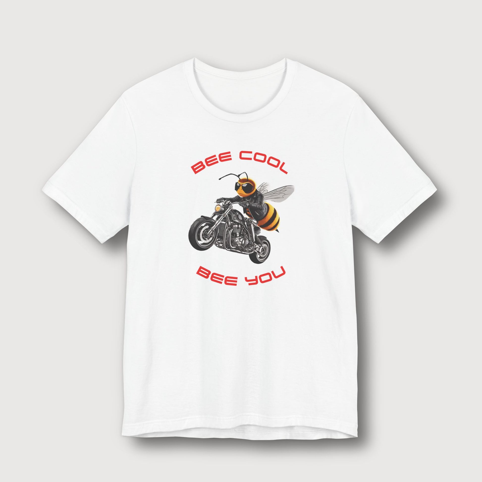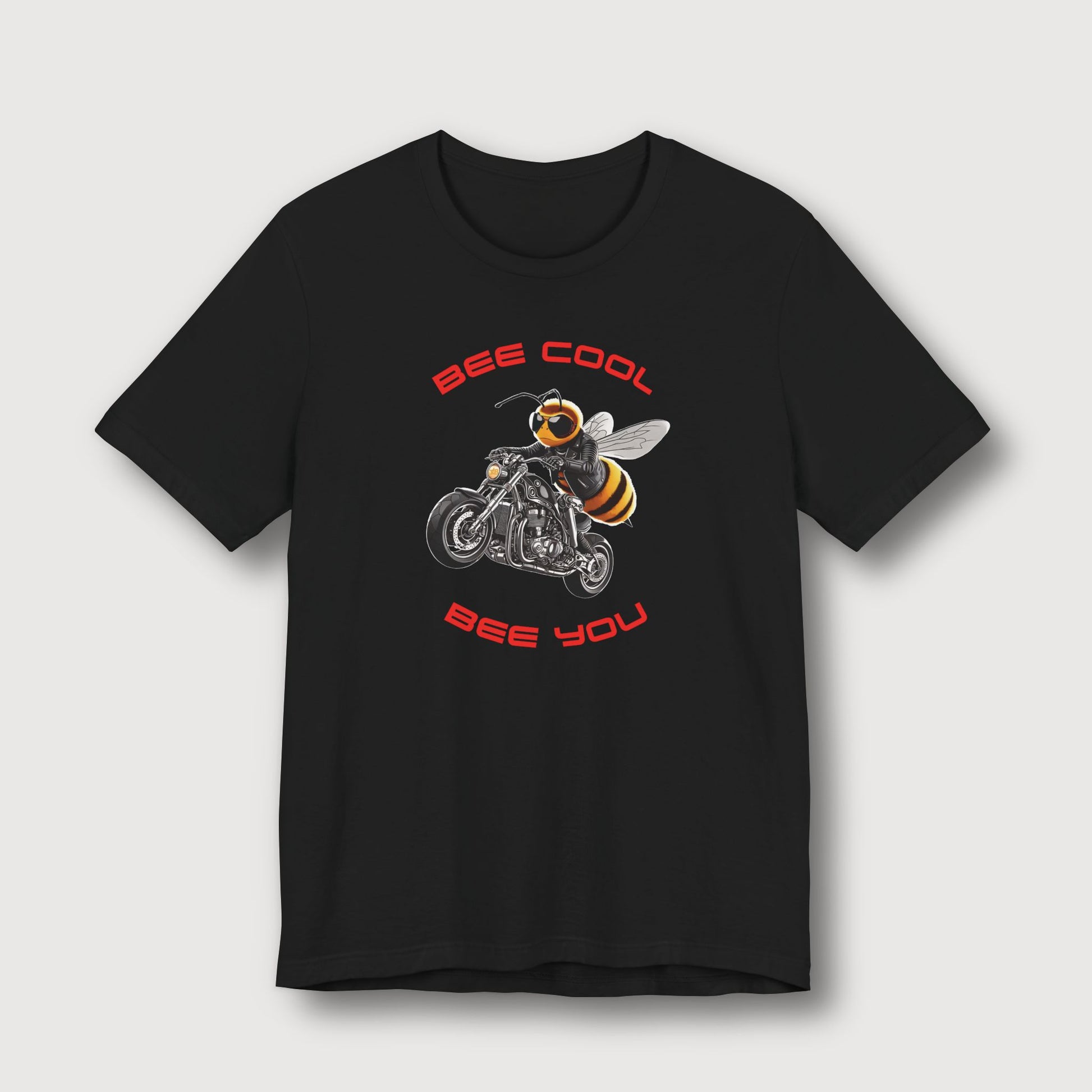 This bee’s not here to collect pollen - it’s here to steal the spotlight. The "Bee Cool - Bee You" t-shirt features a high-attitude, high-horsepower bee riding in style with a look that says, "Cool, calm, and just being me." Dressed in dark shades and biker gear, this buzzing rebel reminds you to stay cool, stay confident, and most importantly - be yourself.