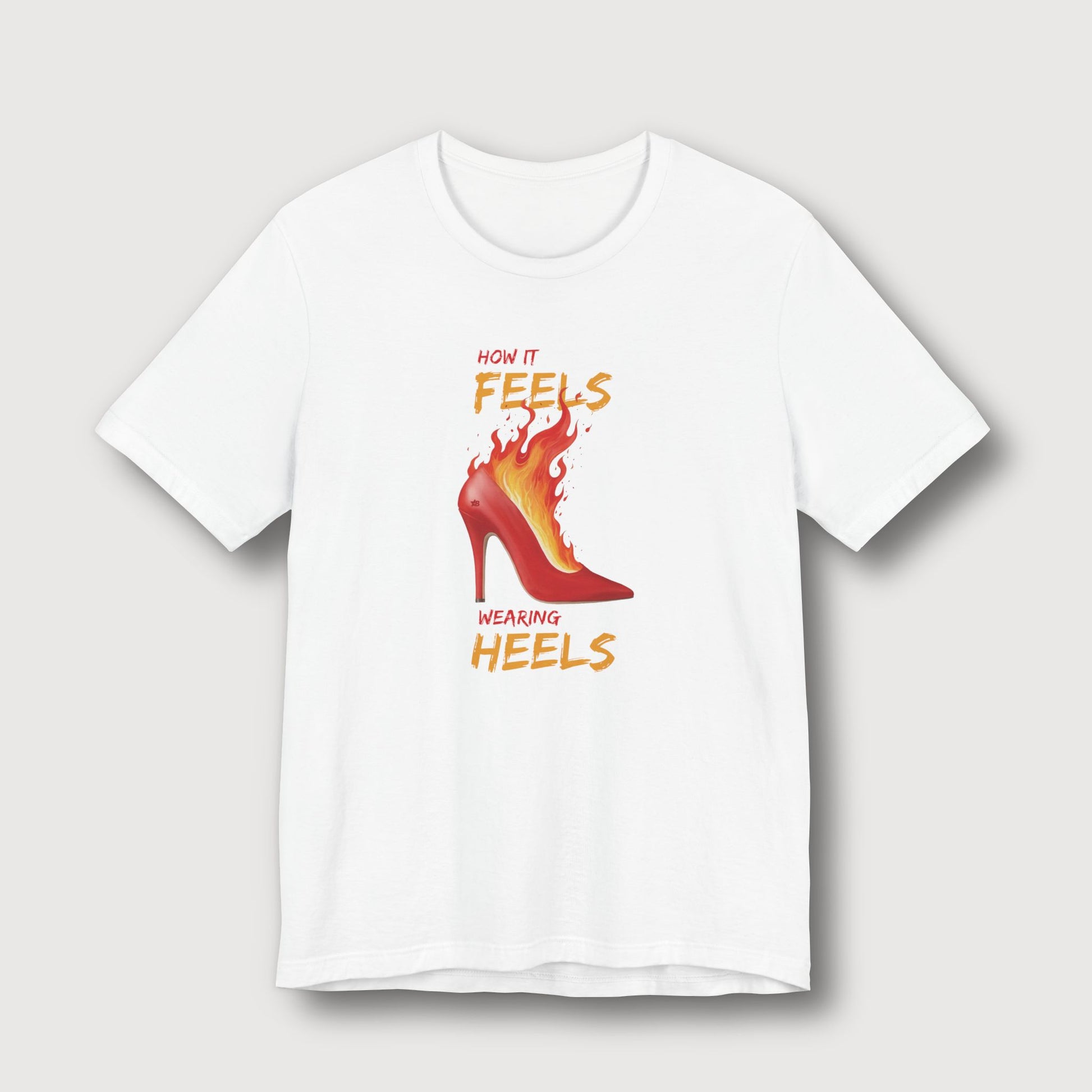 Let’s be honest - wearing heels is less “comfort zone” and more “fiery survival challenge”. This t-shirt features a fierce red stiletto literally on fire, capturing that burning sensation we all pretend isn’t happening. Whether you love the look or just embrace the struggle, this design celebrates the brave souls who walk tall even when their feet are screaming.