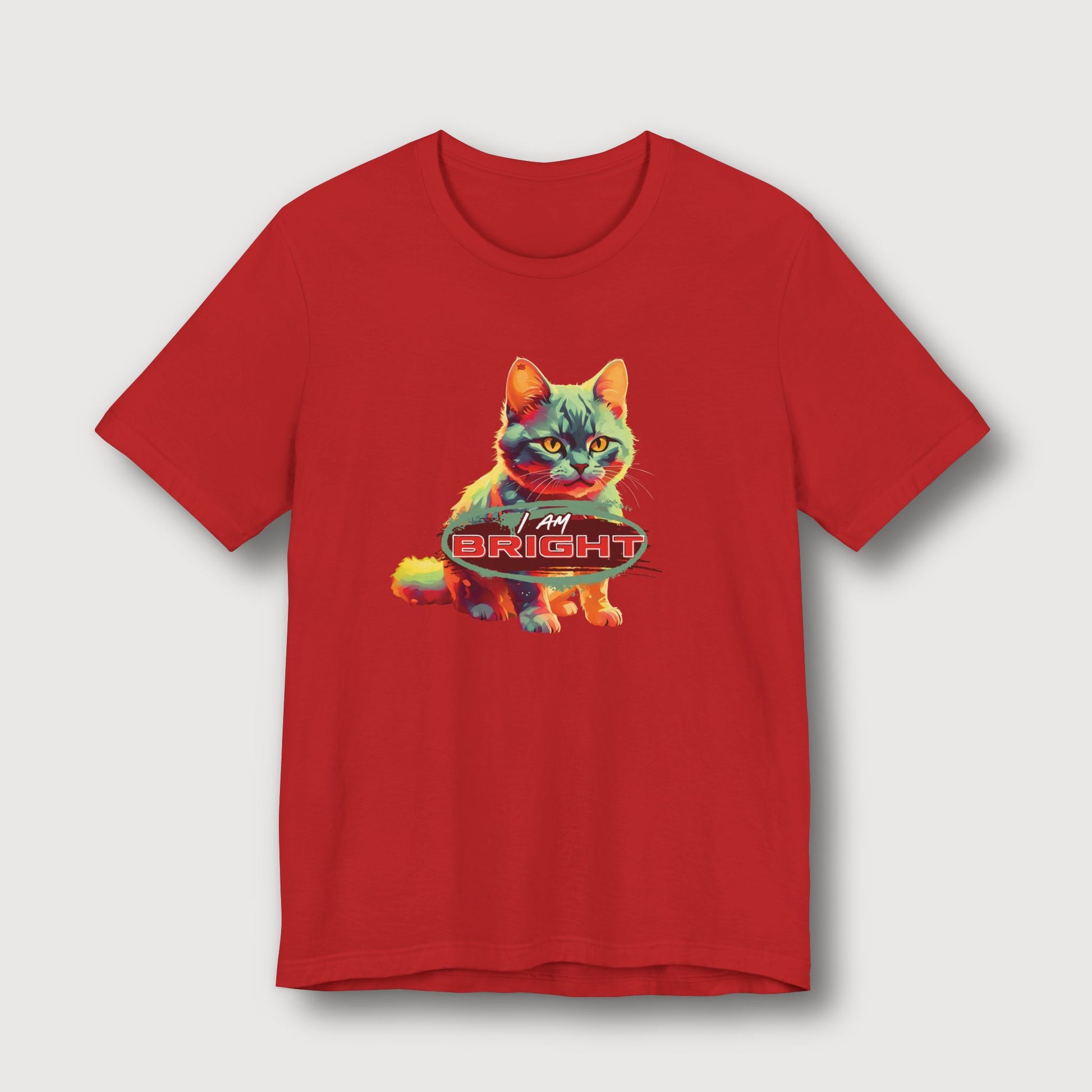 Why blend in when you were born to stand out? The "I Am Bright" t-shirt bursts with vibrant energy, featuring a bold, colorful cat radiating personality and unapologetic style. Perfect for anyone who lights up every room without even trying - this design says it all without you saying a word.
