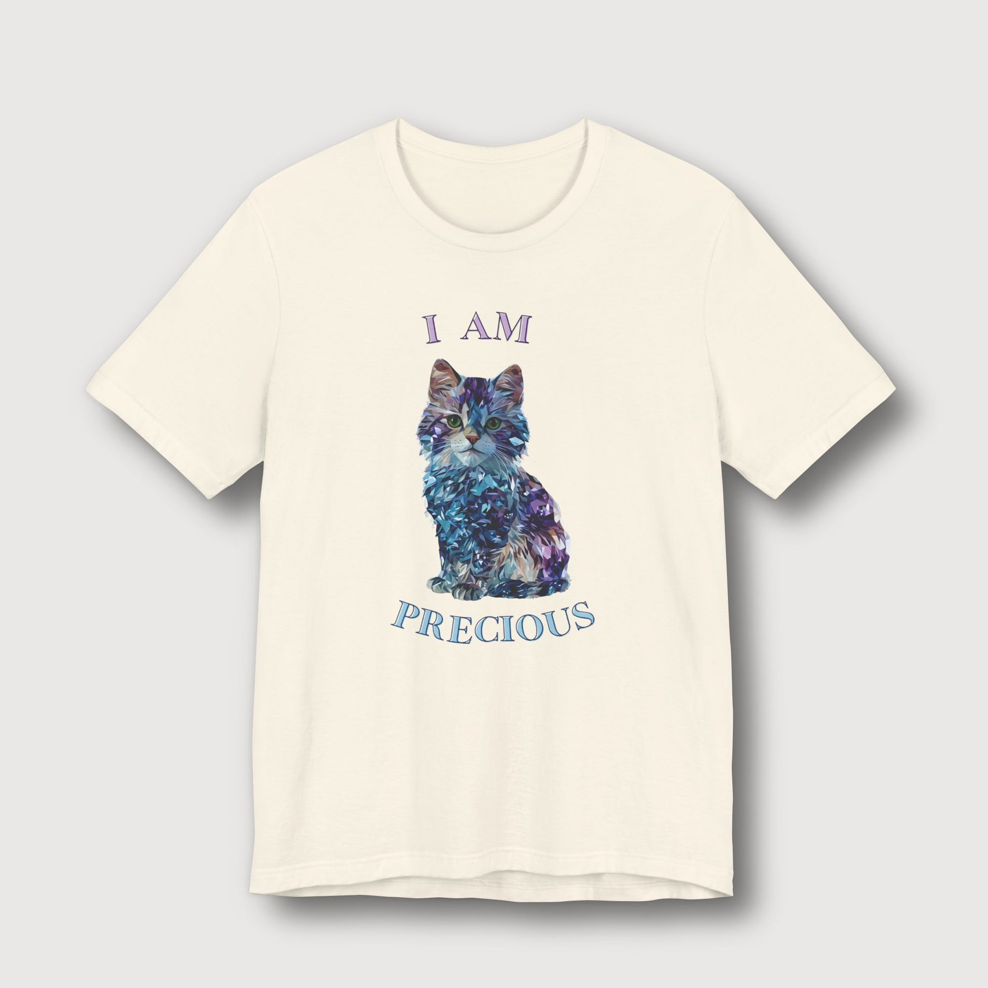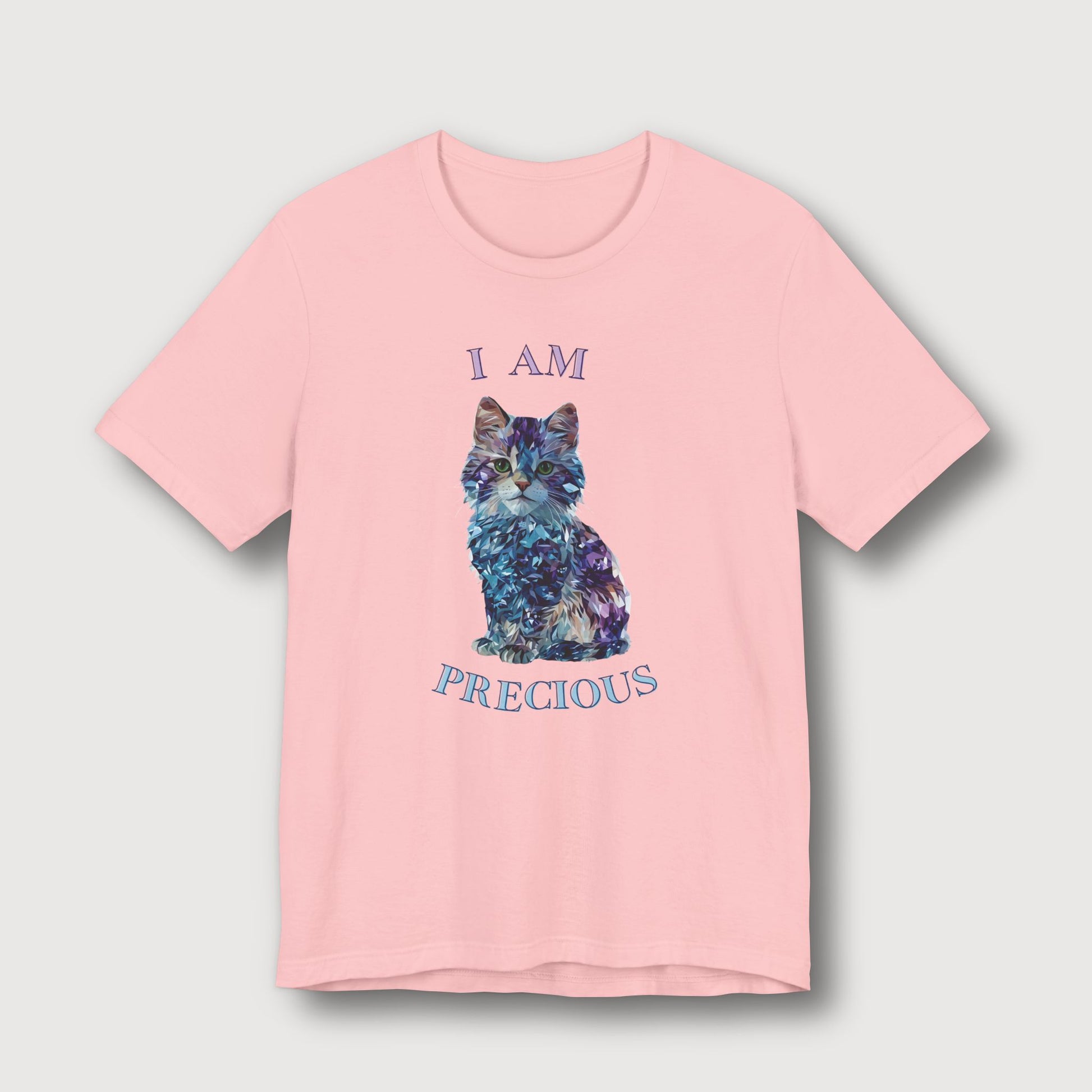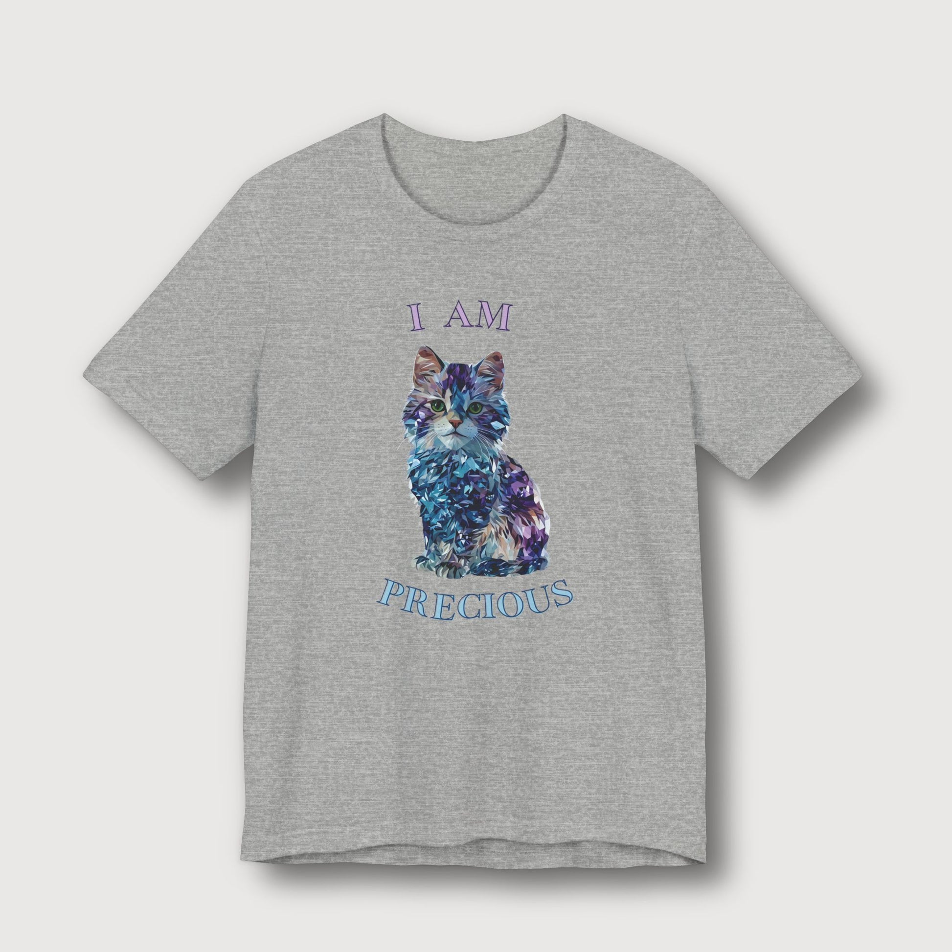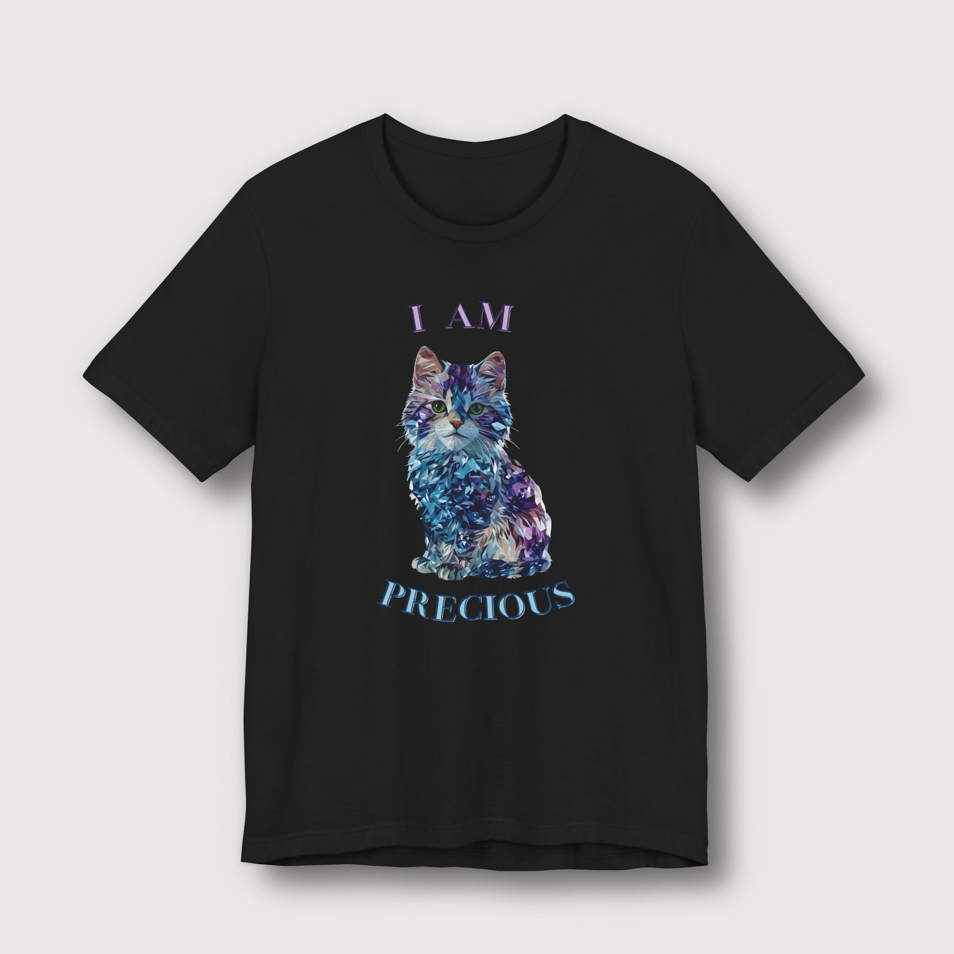 Shine bright and embrace your inner sparkle with this dazzling I Am Precious t-shirt! Featuring a cute cat that looks like it's made of diamonds, this tee is all about reminding you - and the world - that you're a precious gem. With its playful, shimmering design, this cat isn’t just cute; it’s a whole mood. Perfect for those who know their worth and want to add a little sparkle to their day, this tee brings humor, art, and a touch of luxury into your wardrobe.