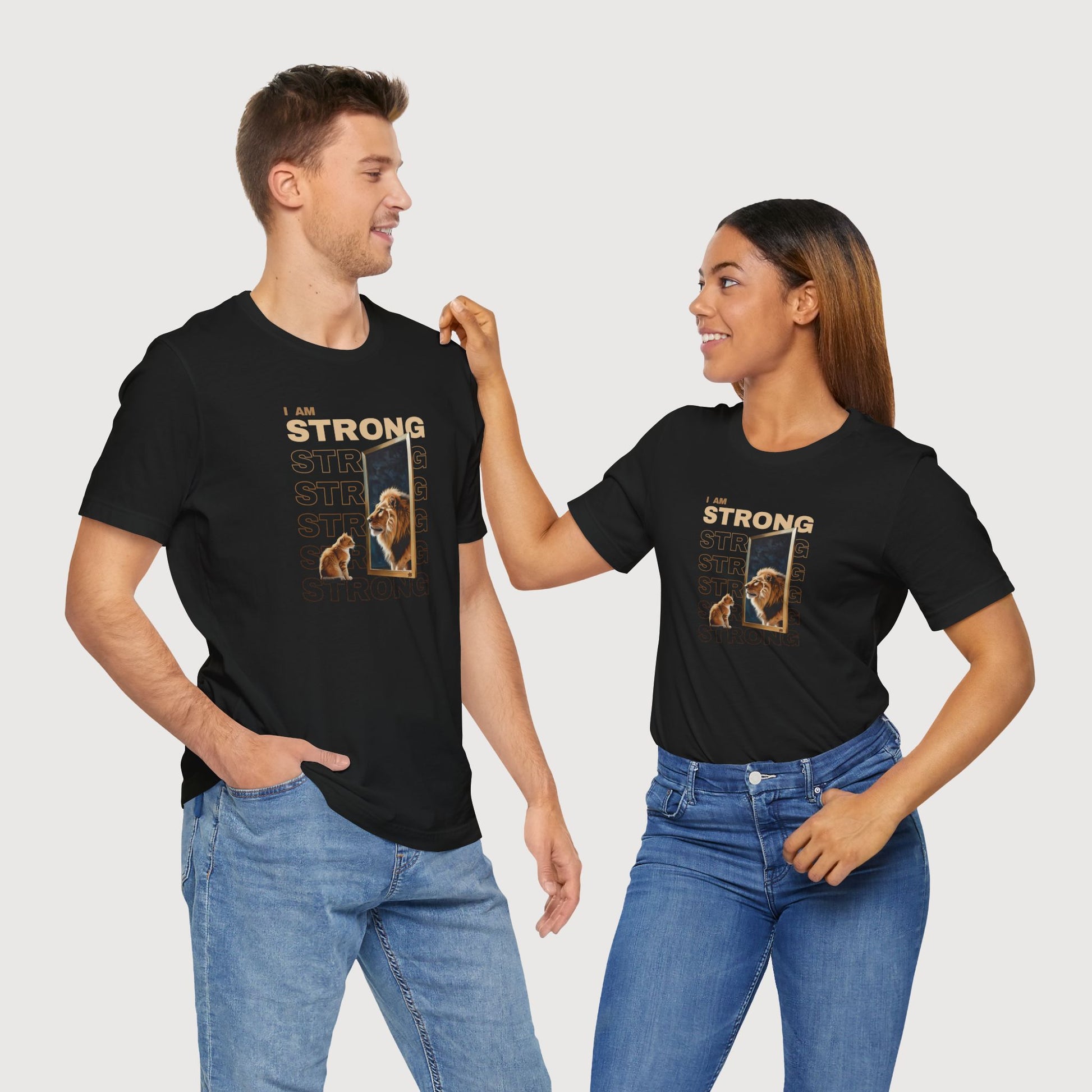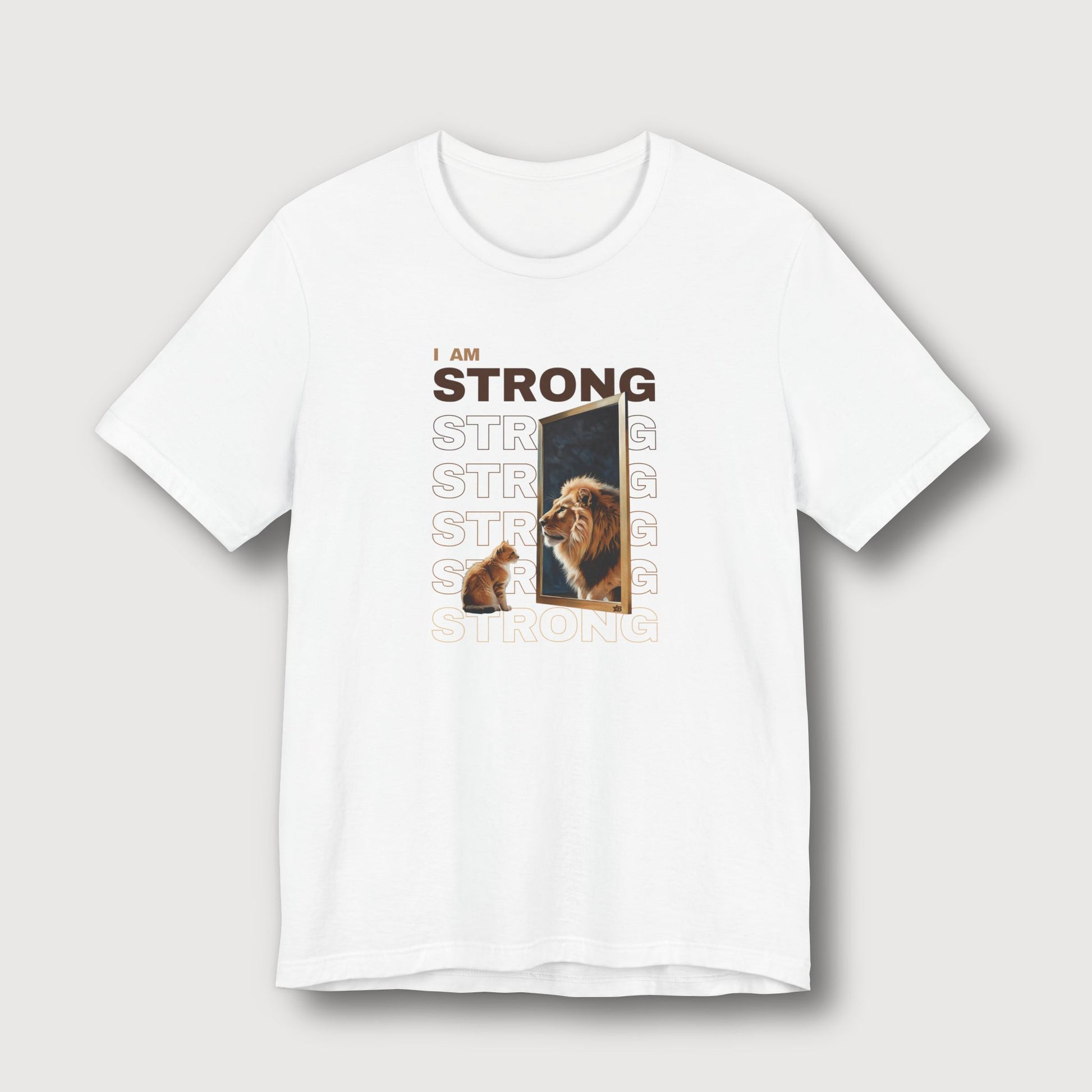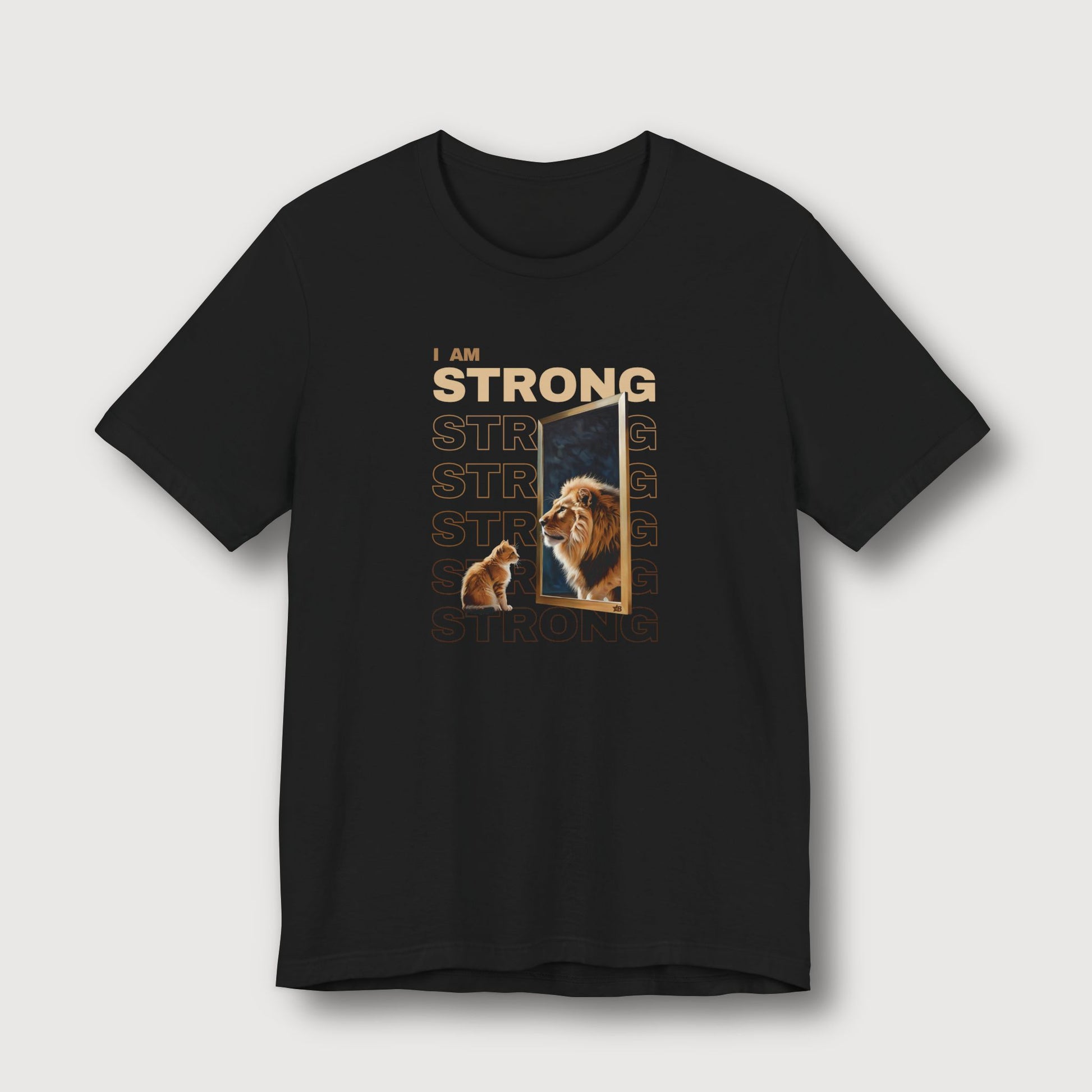 Strength isn’t always loud - it’s often hidden in the heart of the quiet ones. This bold design shows a humble house cat gazing into a mirror, where a powerful lion stares back. It’s a reminder that true strength starts from within. "I’m Strong" isn’t just a phrase - it’s a mindset. And this tee is your daily roar in wearable form.