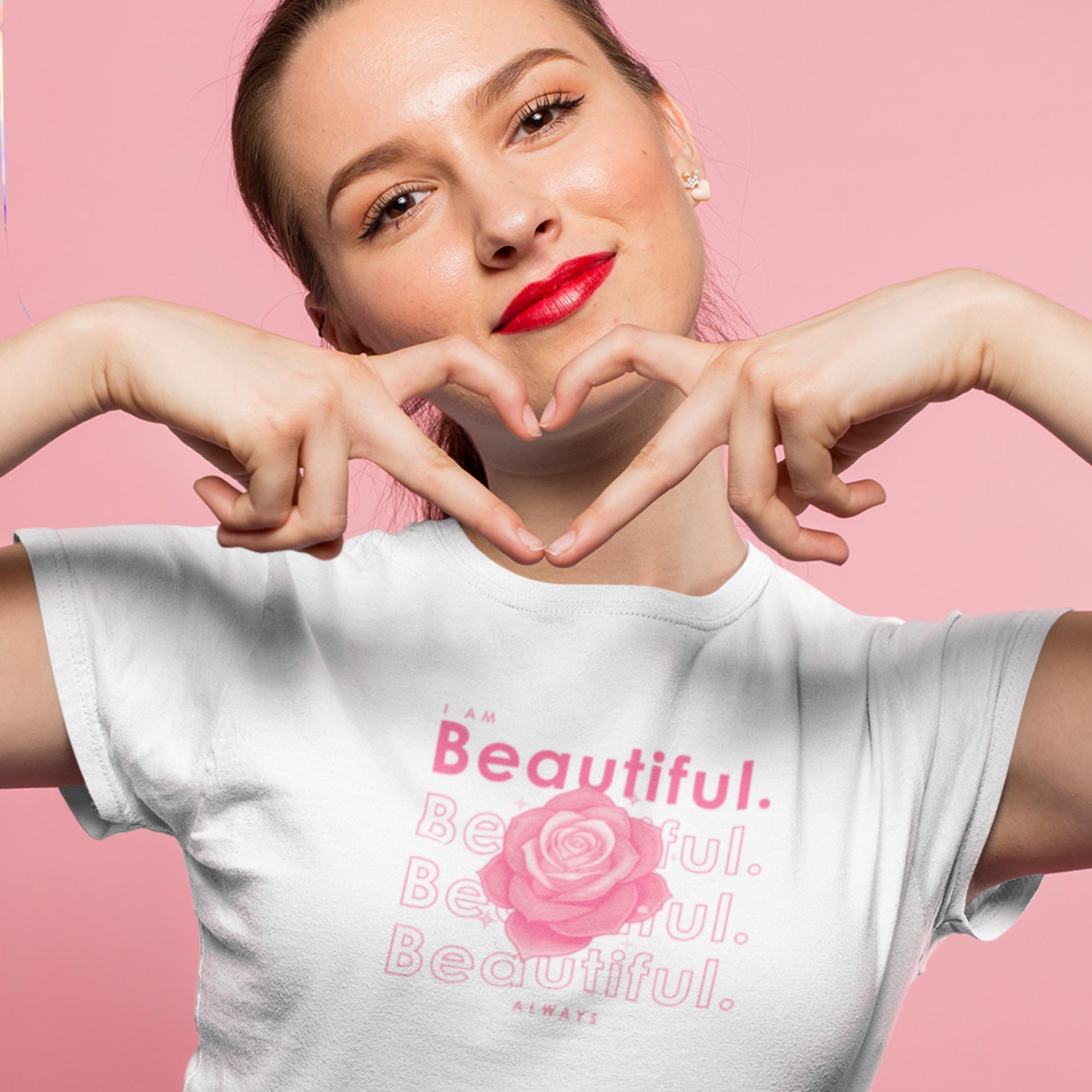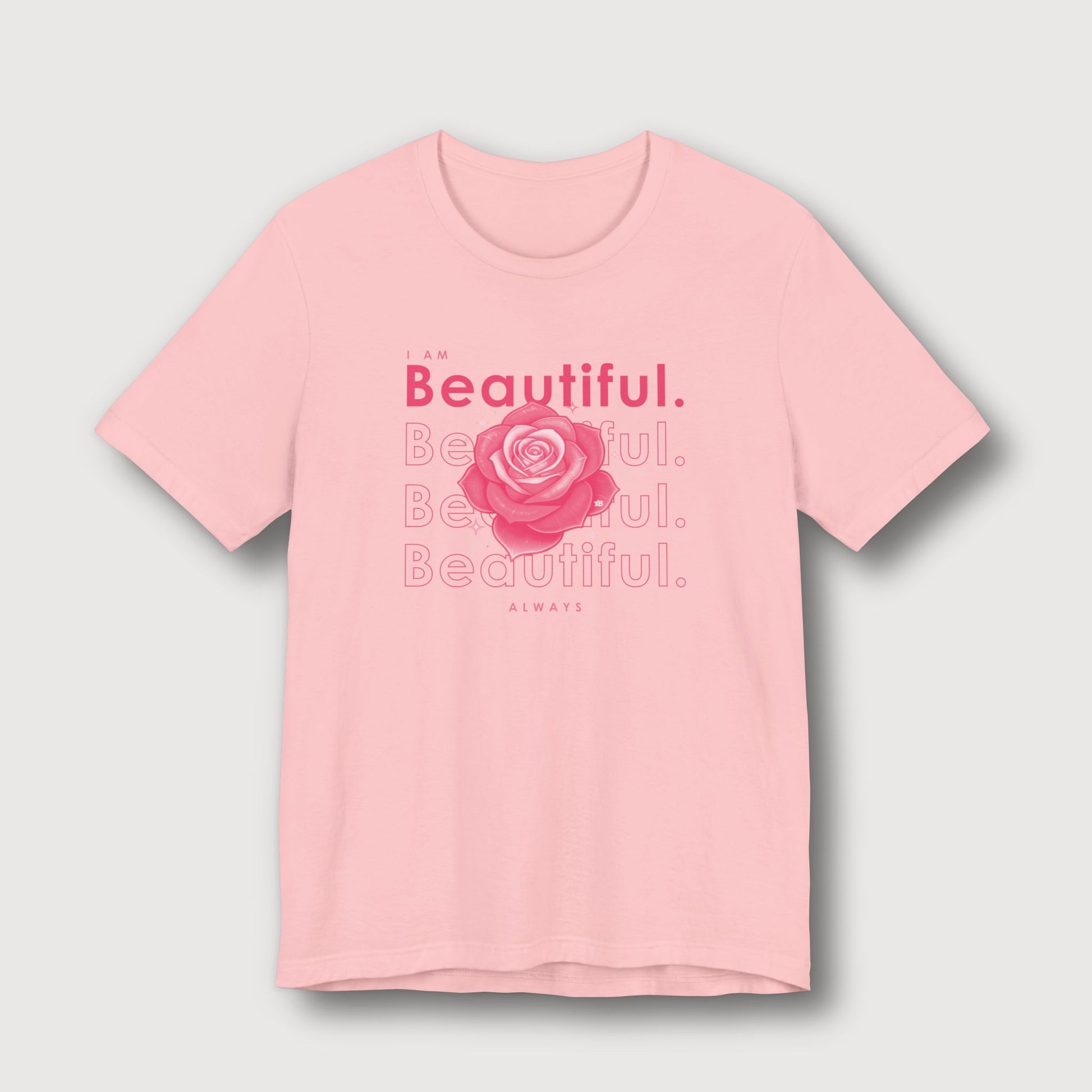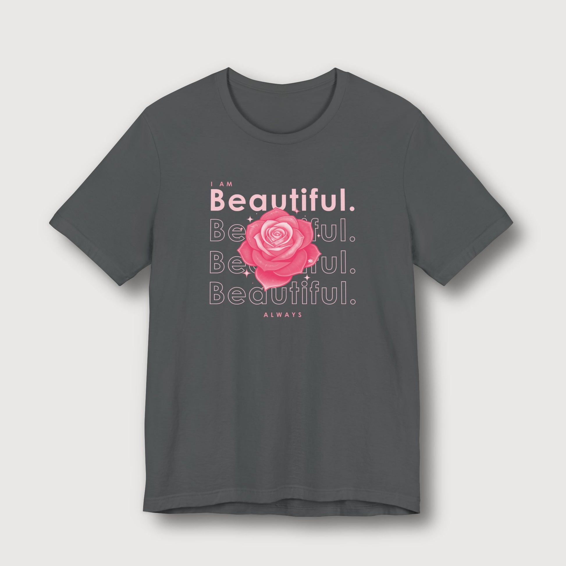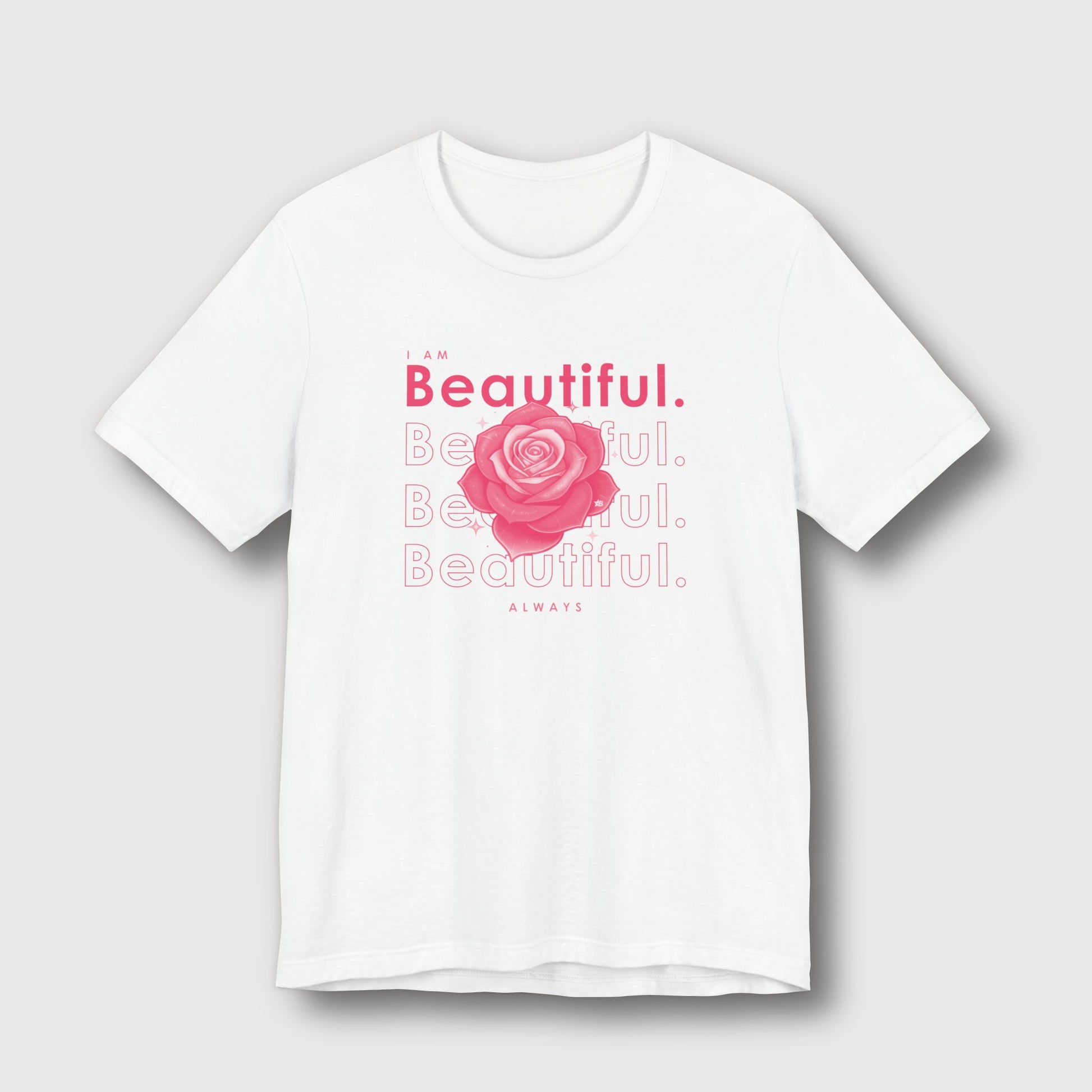 Beauty is power, and it radiates from within. The “I Am Beautiful” t-shirt features a striking pink rose, a timeless symbol of love, grace, and confidence. Bold and elegant, it’s your daily reminder that true beauty never fades - it only grows stronger.