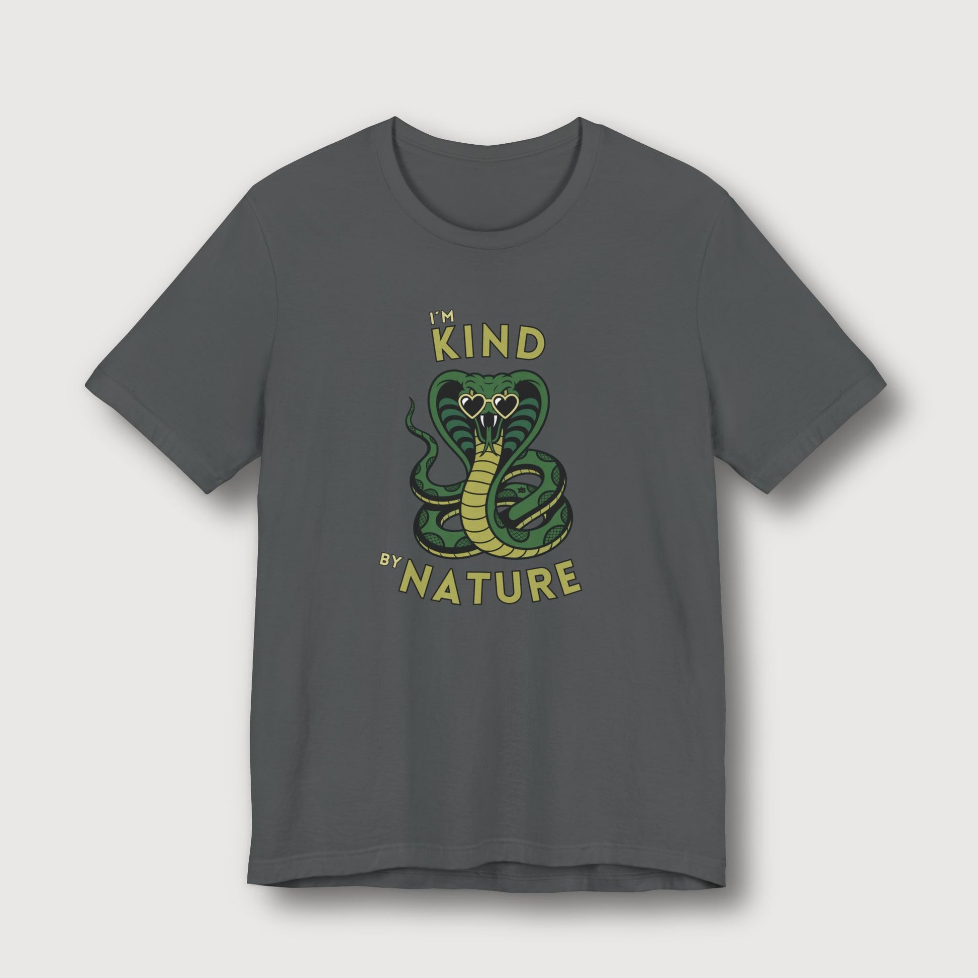 Some people wear their heart on their sleeve. This cobra? It wears heart-shaped sunglasses - and a mischievous smile. The “I’m Kind by Nature” t-shirt is perfect for those who radiate good vibes but still know when to strike (with sarcasm, of course). With its bold artwork and cheeky twist, this tee says what everyone’s thinking: I’m nice… until I’m not.
