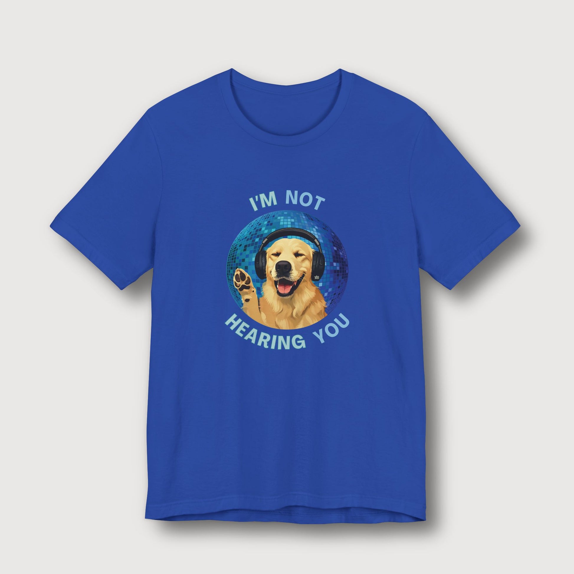 When the beats are louder than the drama, life feels just right. The "I’m Not Hearing You" t-shirt features an adorable golden retriever living its best life, rocking headphones and lost in pure happiness against a vibrant disco ball backdrop. It’s playful, uplifting, and made for anyone who chooses joy over noise and good vibes over bad energy.