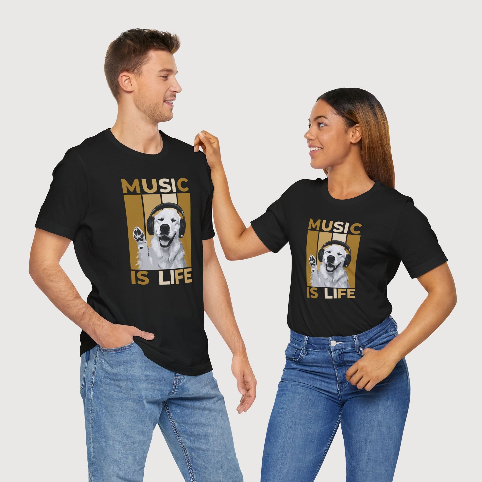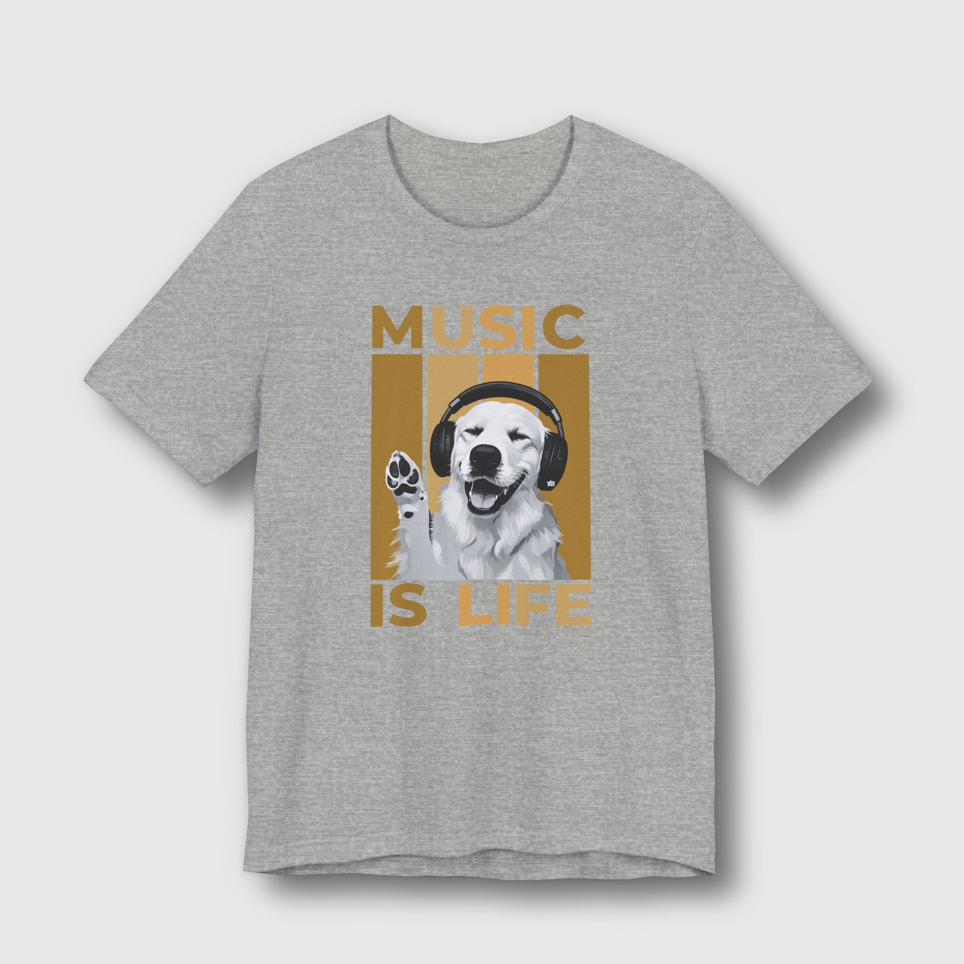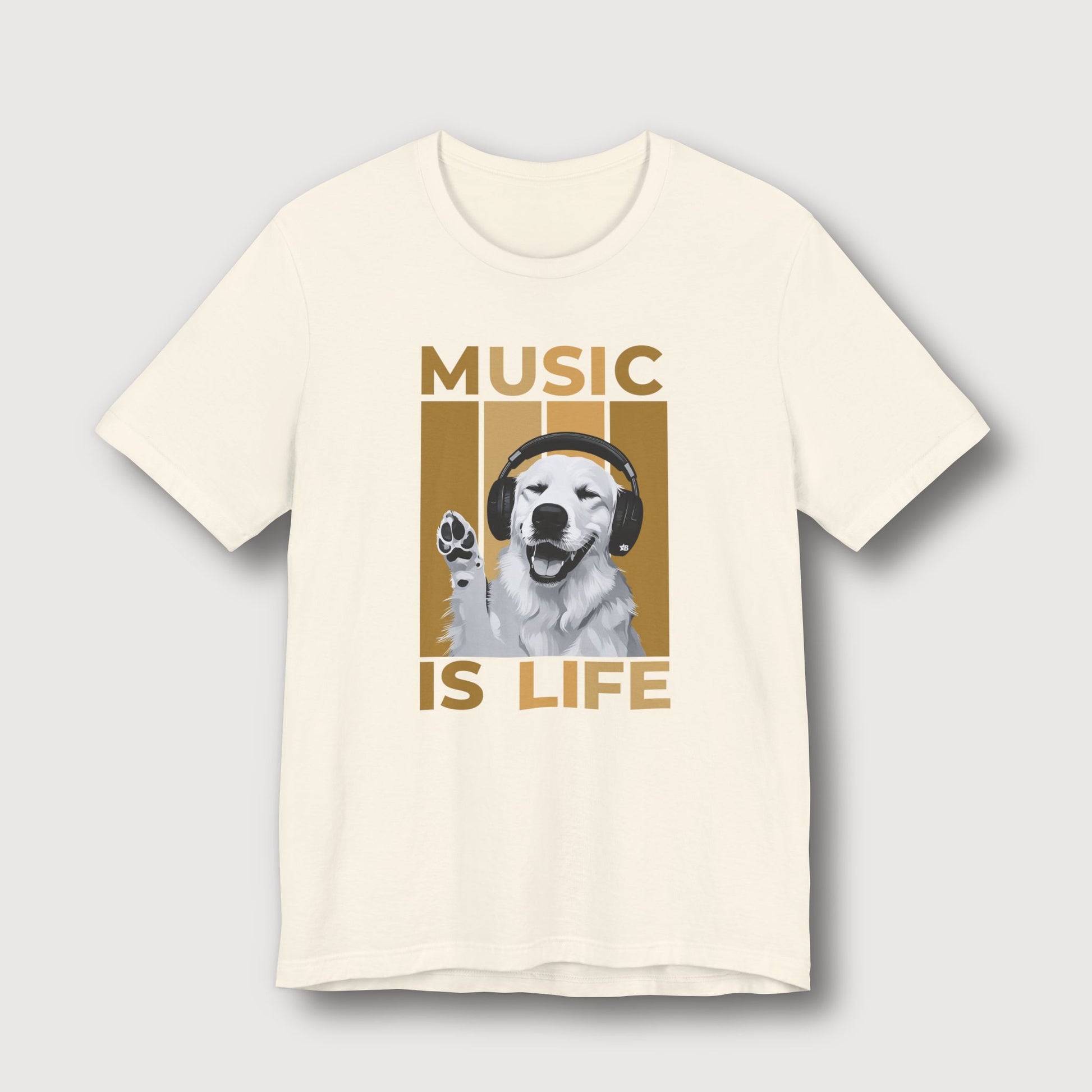 When words fail, the music speaks. The "Music Is Life" t-shirt captures pure happiness with an adorable dog lost in its favorite tunes, headphones on and paws up, radiating nothing but good vibes. It’s a tribute to everyone who believes life is better with a soundtrack and who feels every beat deep in their soul.