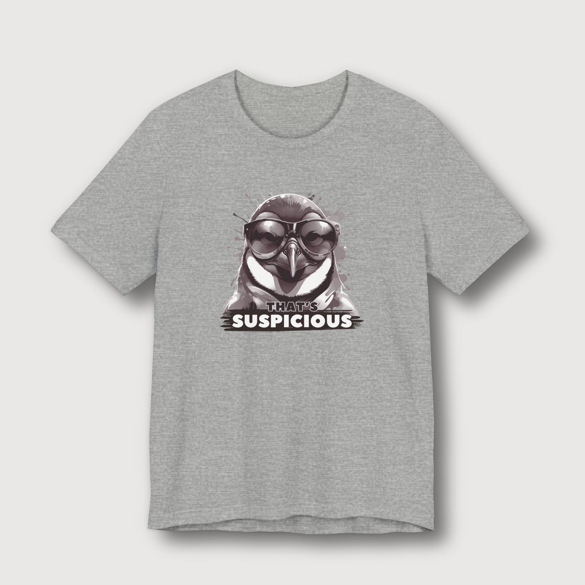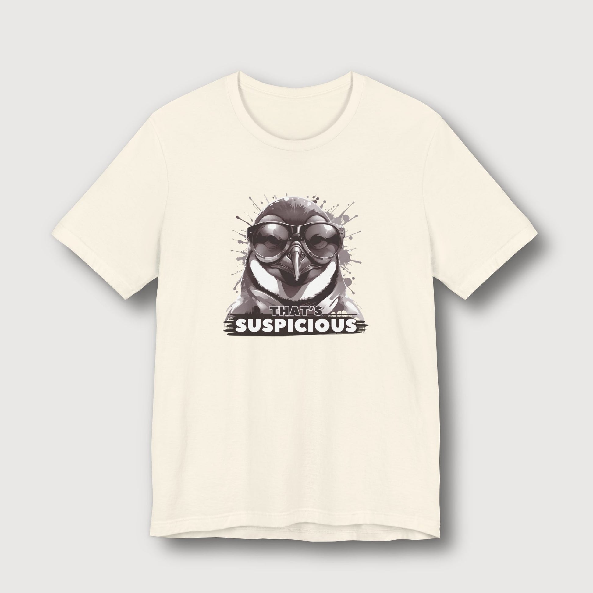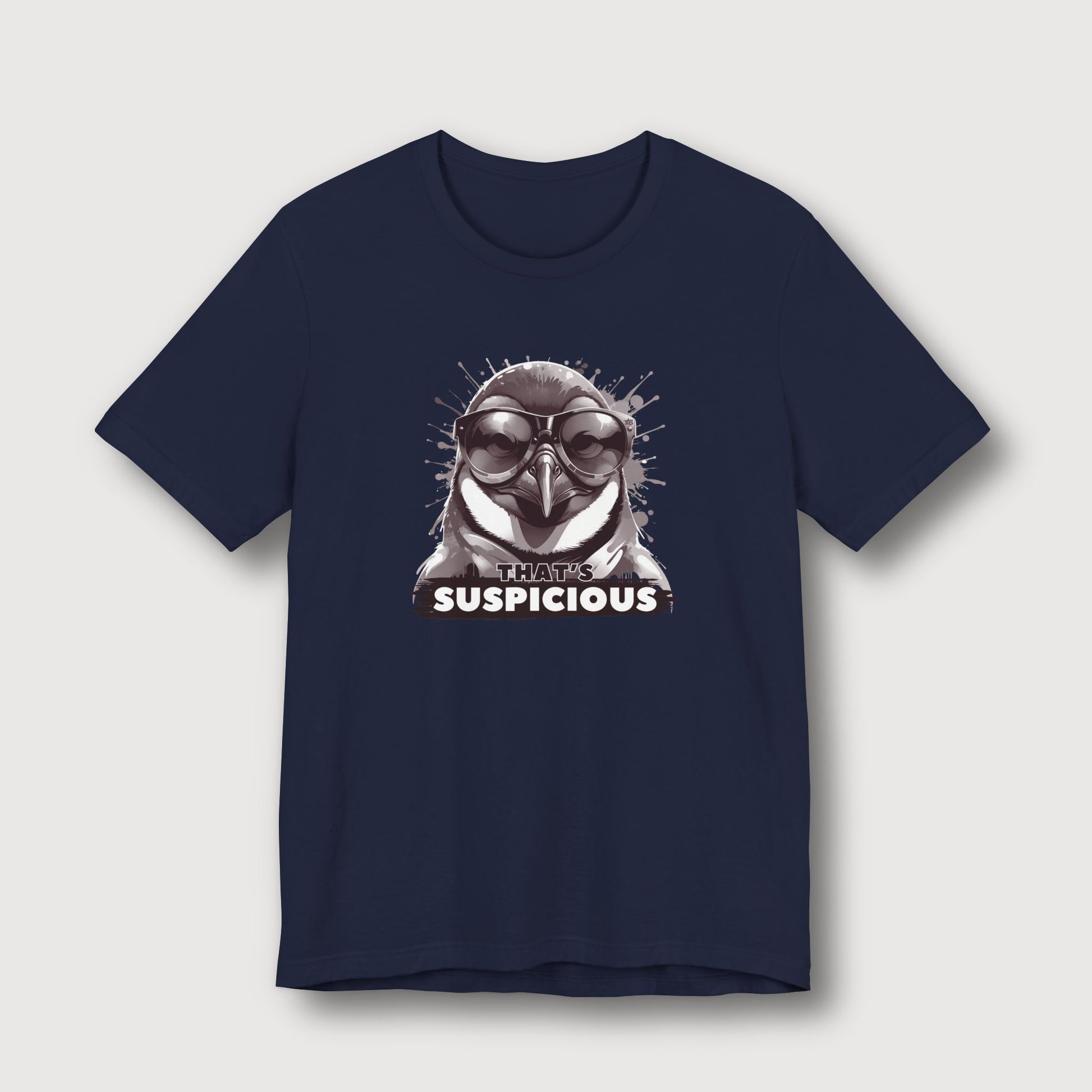 Some penguins blend in with the snow. Not this one. Dressed in classic black and white with dark glasses and a deeply suspicious stare, this penguin knows something fishy is going on - and he’s not afraid to say it. With the phrase "That's Suspicious" sitting below his unimpressed beak, this t-shirt brings maximum cool with just the right amount of side-eye. Perfect for those moments when your instincts kick in and you know something’s off.