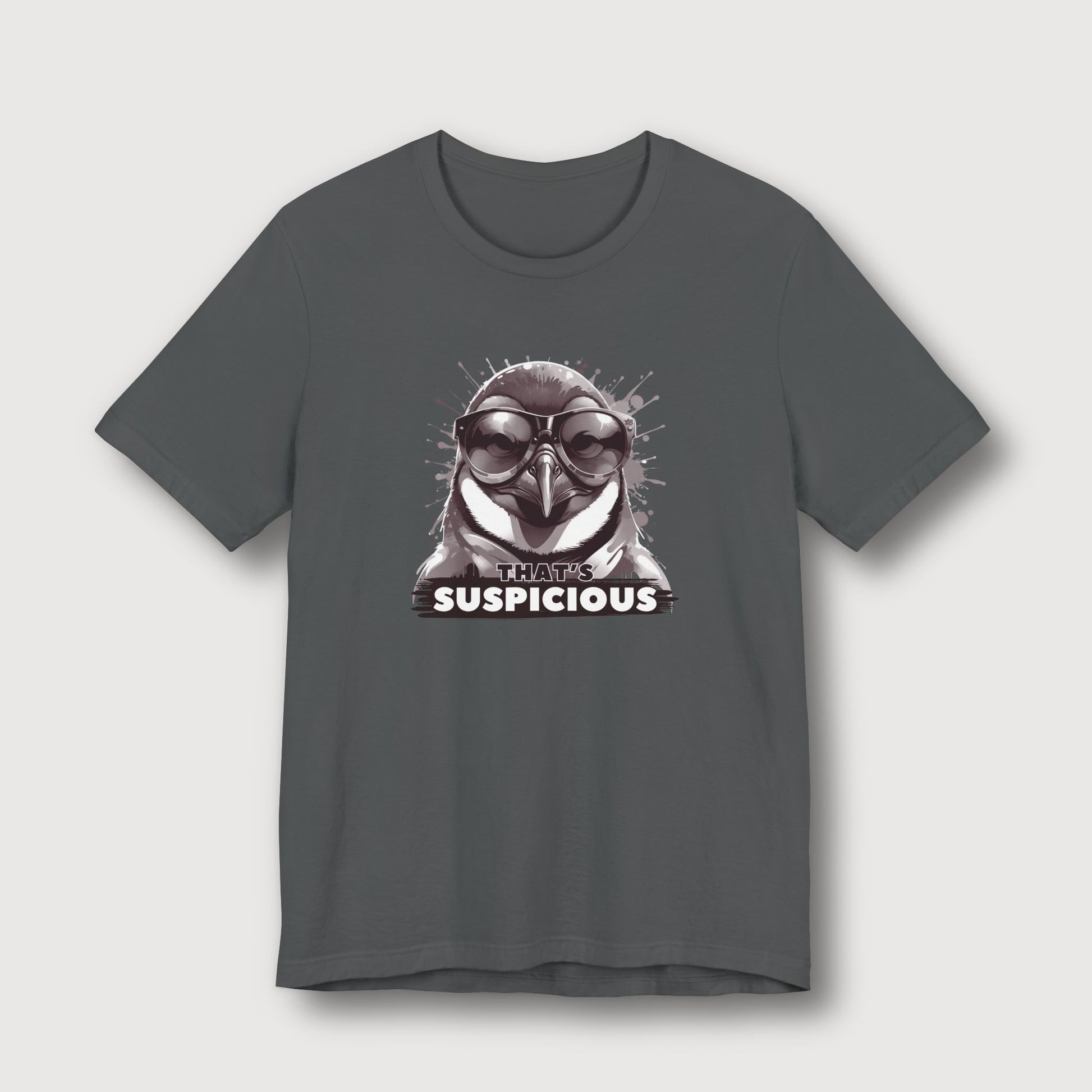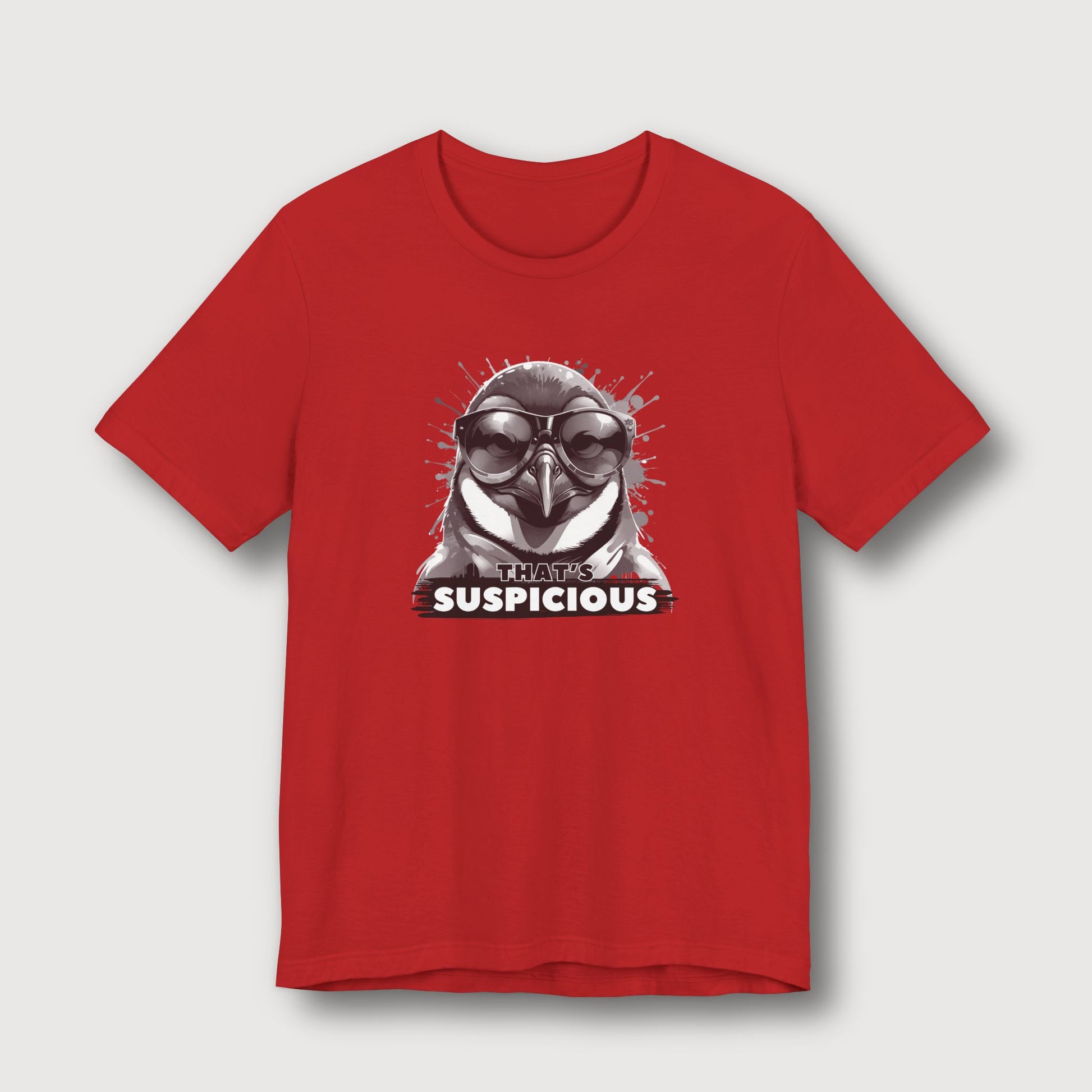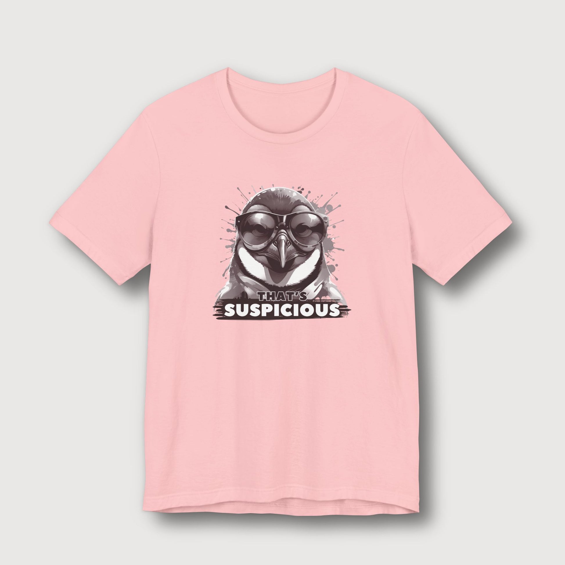Some penguins blend in with the snow. Not this one. Dressed in classic black and white with dark glasses and a deeply suspicious stare, this penguin knows something fishy is going on - and he’s not afraid to say it. With the phrase "That's Suspicious" sitting below his unimpressed beak, this t-shirt brings maximum cool with just the right amount of side-eye. Perfect for those moments when your instincts kick in and you know something’s off.