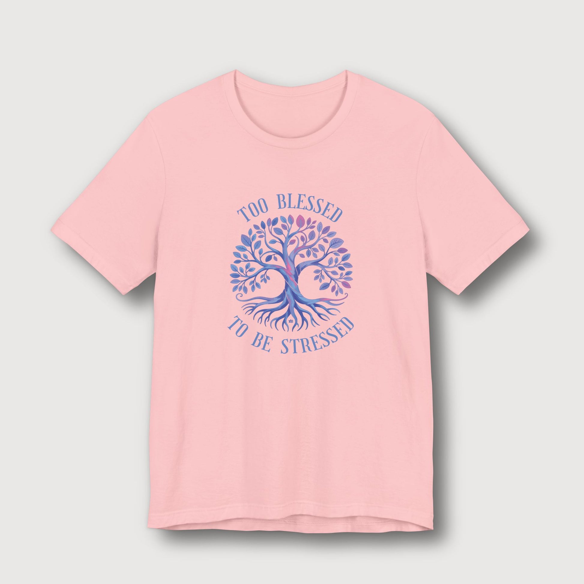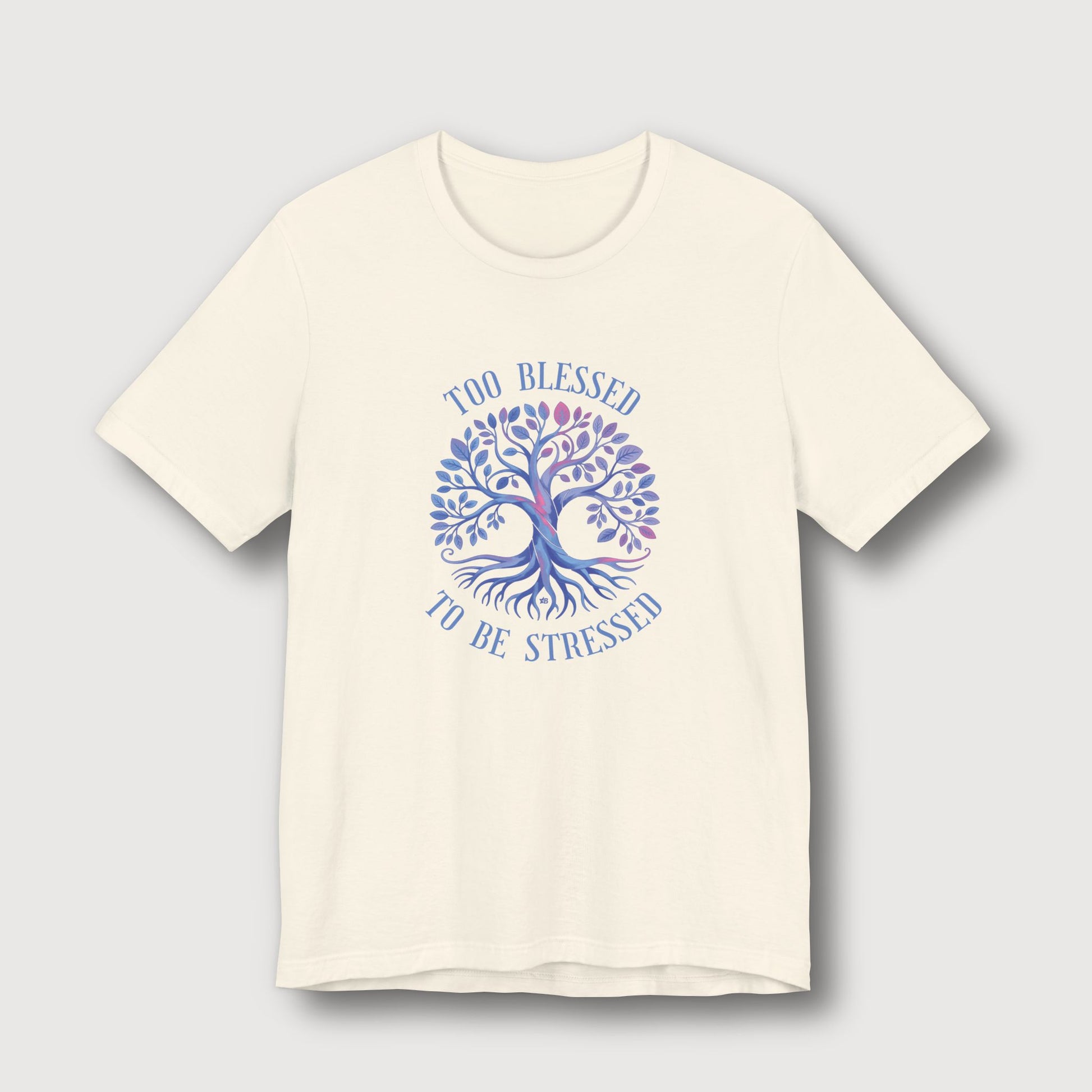 Life’s too short to let stress win. The "Too Blessed to Be Stressed" t-shirt brings a calming vibe with its beautifully designed, intertwined tree of life in soothing blue and purple tones. A gentle reminder to embrace gratitude, stay grounded, and let positive energy flow - all while looking effortlessly stylish.